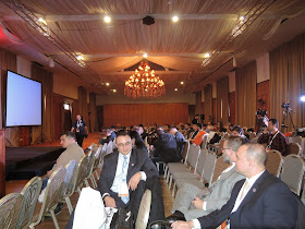 About 20mins away drive from the hotel, the weather was so cold and it was almost minus 2 degrees. We loved it but of course, not for long cos after a while we were shivering. The exterior view of the conference hall was quite plain but once inside, we were surprised by the interior design. Greeted by receptionists (pretty Romanians ladies!), we register our names and got ourselves a landyard pass and a bag of goodies. Although there were no Tshirts (something i was expecting), this event had a new thing...a Black Hat!!! Pretty cool! There were also many free stickers to choose from.